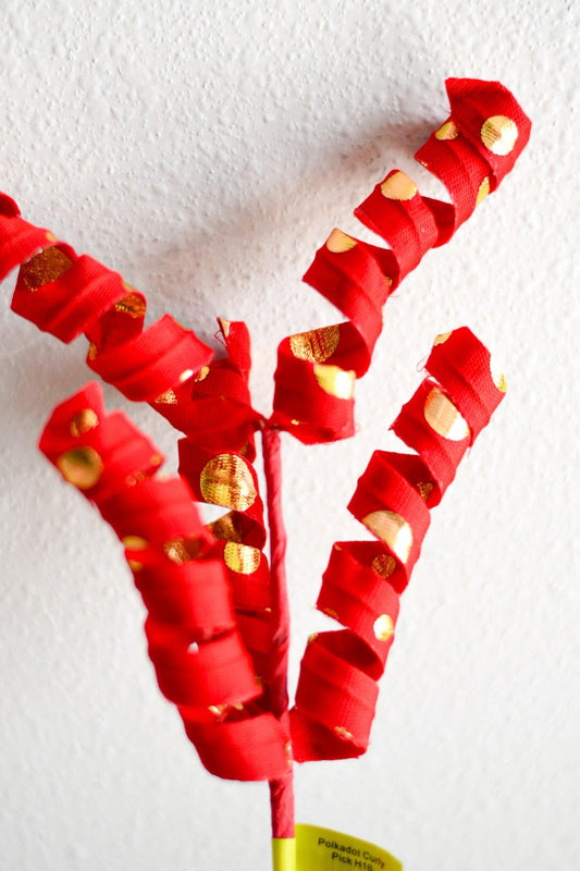 Red/Gold Polka Dot Curly Pick 16"